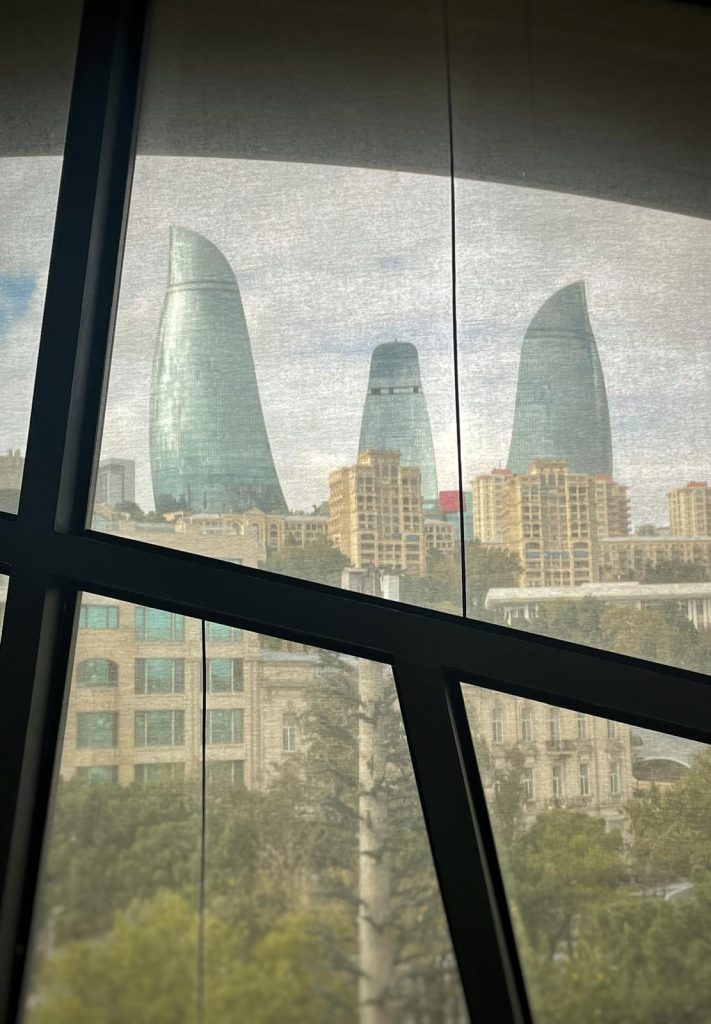 4) In soli 4 minuti ti porterà alla collina dove si trova il Parco Dagustu. Uscirai proprio di fronte alle Flames, i 3 grattacieli a forma di fiamme (il fuoco è il simbolo del paese; per saperne di più vieni a trovarmi su Instagram e/o leggi Cosa vedere in Azerbaijan). Le Flames sono particolarmente belle di sera quando si illuminano in 3 temi: fiamme, colori della bandiera azera e bandiera azera che sventola. Sebbene ti consiglio di venire quassù anche di notte per ammirare Baku by night dall’alto, sappi che in relatà le Flames le puoi vedere illuminate anche dalla città vecchia o dal lungomare perché sono edifici che si vedono da molte parti della città.